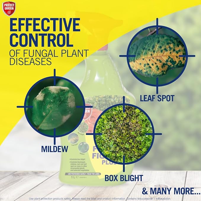 This product is a Ready to Use Fungicide Spray. It is designed to Control and eradicate common leaf diseases. It is effective against blackspot, mildew, rust, and box blight. It provides Lasting protection for up to three weeks. It is Suitable for roses, ornamental plants, shrubs, flowers, fruits, and vegetables. It can be used for both indoor and outdoor gardening.
